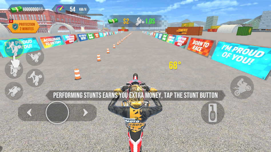 前轮特技摩托,这是一款把速度与技巧绝妙结合的3D特技竞速游戏。在游戏里,玩家能摇身一变成为超酷车手,驾驭定制的摩托车,于布满挑战的赛道上风驰电掣。凭借精准的操控,完成前空翻之类的高难度特技动作,在惊险的跳跃与极限平衡间,对物理极限发起挑战。此外,游戏还准备了多种多样的玩法等你尝试。喜爱这类游戏的朋友们,赶紧加入吧!
