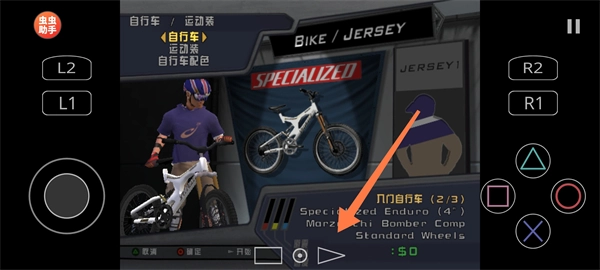 进入商店界面后可更换车辆皮肤与部件,完成个性化装饰后点击下方箭头开始比赛。